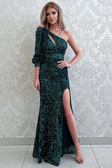 Rendi indimenticabile la tua serata con questo incantevole abito lungo verde monospalla, impreziosito da scintillanti paillettes. Il design con un sensuale spacco laterale e la manica a sbuffo donano un tocco di eleganza e raffinatezza. Perfetto per eventi speciali, cerimonie e feste, questo vestito combina glamour e modernità, garantendo un look mozzafiato. Scopri la nostra collezione di abiti da sera eleganti e femminili, ideali per ogni occasione. Disponibile in diverse taglie.