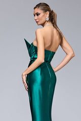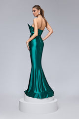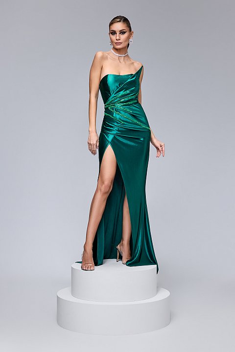Elegant mermaid long dress with slit, strapless bust decorated with sequin trim.