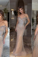 Lasciati incantare da questo abito a sirena color nude, interamente ricamato con strass luminosi che disegnano la silhouette con eleganza. Il corpetto strutturato con scollo a cuore e spalle scoperte dona un tocco regale e seducente. Il tessuto in tulle trasparente e la coda morbida creano un effetto etereo e prezioso. Ideale per eventi esclusivi, gala o cerimonie di alto livello. Un vero capolavoro sartoriale.