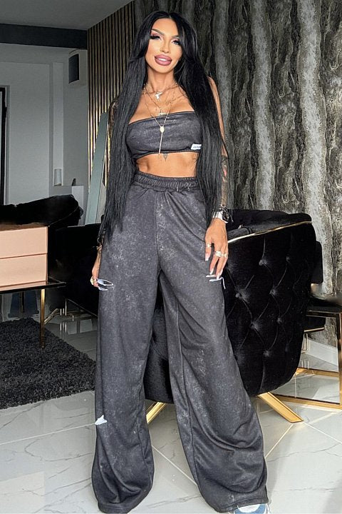 2-piece sports set consisting of a bandeau top and high-waisted loose trousers with cut out.