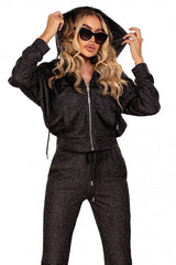 2-piece glitter sporty outfit consisting of a hoodie and high-waisted skinny pants.