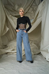 Jeans a Gamba Larga con Strass – Look Elegante e Brillante