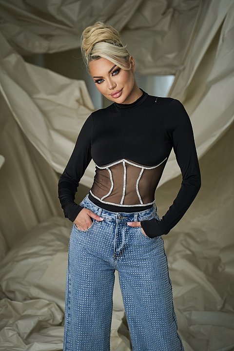 Questi jeans a gamba larga con strass aggiungono un tocco di glamour al tuo outfit quotidiano. Realizzati in denim di alta qualità, questi jeans offrono una vestibilità comoda e un design trendy che cattura l'attenzione. Perfetti per creare look originali e sofisticati, sono ideali da abbinare a body aderenti o bluse eleganti per uno stile chic. Aggiungi un tocco scintillante al tuo guardaroba con questi jeans dal taglio moderno e dal fascino inconfondibile, ideali per serate fuori o eventi speciali.