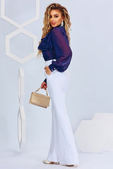 Elegant flared trousers with high waist and pockets.