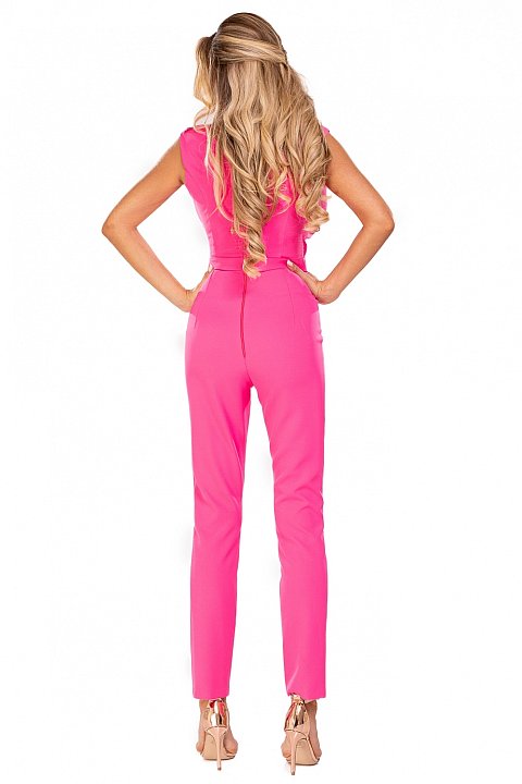Elegant jumpsuit with turned-up V-neck and zip on the back, sequin decorations on the bodice.