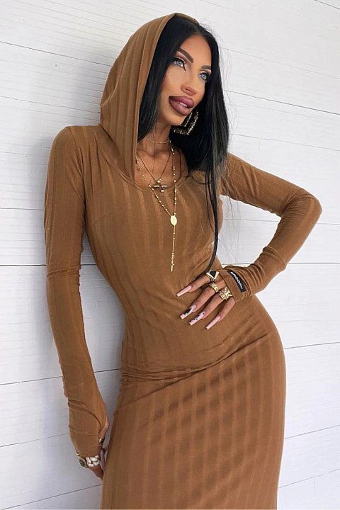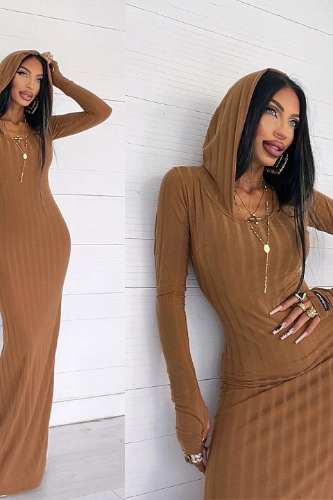 Abito lungo sportivo a costine con cappuccio e fori per il pollice.