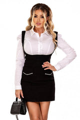 Abito corto semi elegante in tessuto arricciato bouclé, accessoriato con perle e abbinabile con una camicia o t-shirt.