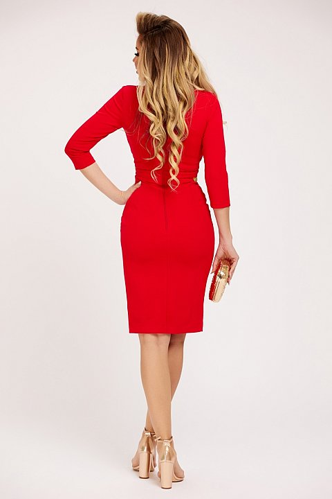 Tubino elegante con coulisse in vita e passamaneria sul bustier.