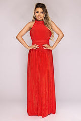 Elegante e senza tempo, questo abito lungo rosso in tessuto crepe plissettato è perfetto per cerimonie serali e occasioni formali. Il collo alto dona raffinatezza, mentre il taglio morbido e la fascia in vita valorizzano la silhouette con naturalezza. Il tessuto fluido scende leggero accompagnando i movimenti con grazia. Un must-have per chi ama la sobrietà chic con un tocco moderno.