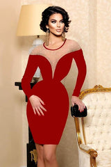 Tubino elegante bicolore a maniche lunghe con effetto scollo profondo e vita stretta.