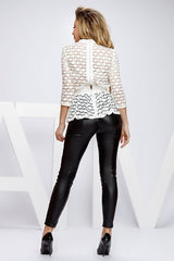 Blusa in pizzo trasparente beige dal taglio moderno che mette in risalto la tua sensualità. Il pizzo le dona eleganza ed è accessoriato con balze.