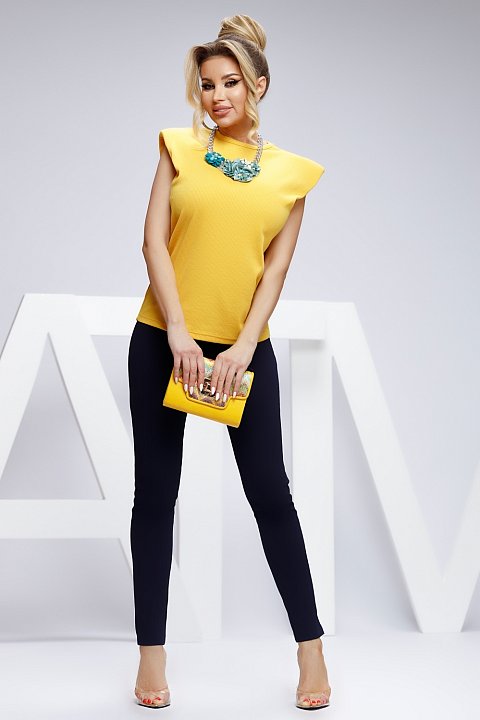 Top giallo con spalline, modello casual e comodo. Il top è senza spalline e con collo tondo.