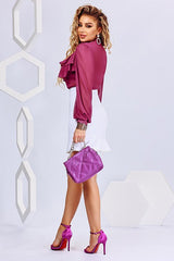 Questa camicia fucsia trasparente è l'ideale per chi cerca un look elegante e femminile. Caratterizzata da sofisticati volant sul busto e bottoni decorativi, è perfetta per aggiungere un tocco di glamour al tuo outfit. Le maniche lunghe in tessuto leggero e trasparente donano un senso di leggerezza e raffinatezza, mentre il colletto classico e i dettagli sartoriali la rendono adatta a occasioni speciali o serate eleganti. Abbinala a gonne o pantaloni per un look sofisticato e chic.