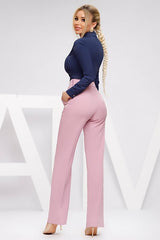 La camicia da ufficio blu navy è una camicia da ufficio elegante e di tendenza.La camicia è arcuata sul corpo e rappresenta l'abito perfetto da indossare in ufficio. Accessoriato con un fiocco con note di rosso e pietre preziose.