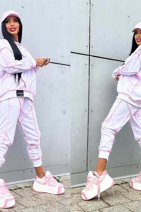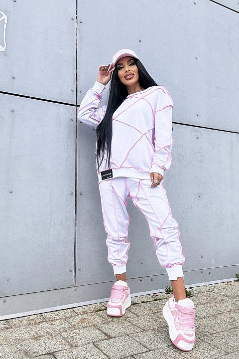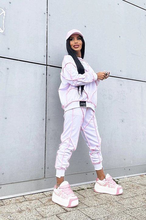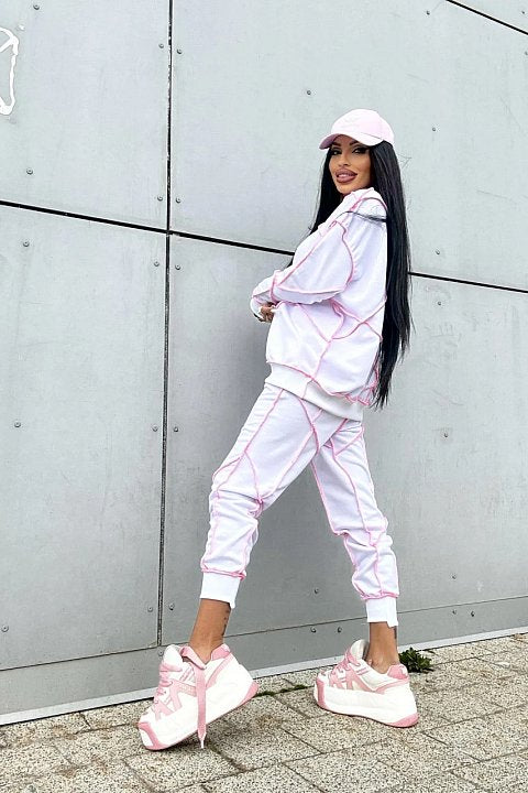 Completo sportivo 2 pezzi composto da felpa e pantaloni comfy con rifiniture a contrasto di colore tono su tono.