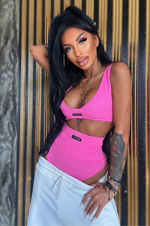 Completo sportivo 2 pezzi composto da top cropped e bikini a vita alta.