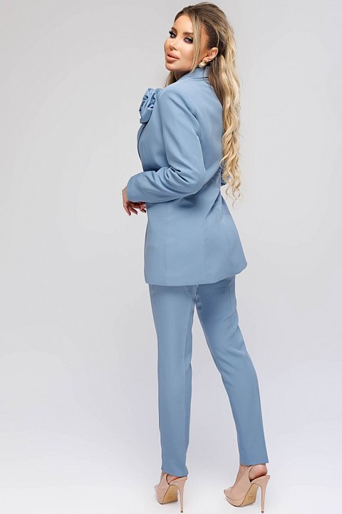 Questo raffinato blazer blu polvere è il capo must-have per un’eleganza senza tempo. Il taglio sartoriale avvitato esalta la silhouette, mentre la chiusura a un bottone conferisce un tocco di classe. La spilla a forma di rosa, removibile, aggiunge un dettaglio romantico e versatile, perfetto per personalizzare il look a seconda dell’occasione. Ideale per outfit business chic o cerimonie, si abbina perfettamente a pantaloni eleganti o