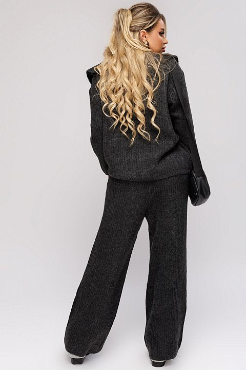 Perfetto per le giornate fredde, questo completo in maglia grigio combina stile e comfort. Il maglione oversize con zip frontale e colletto alto si abbina perfettamente ai pantaloni larghi, offrendo una vestibilità rilassata ma elegante. Ideale da indossare con sneakers o stivaletti per un look casual chic. Crea il tuo stile unico con questo set versatile e trendy!