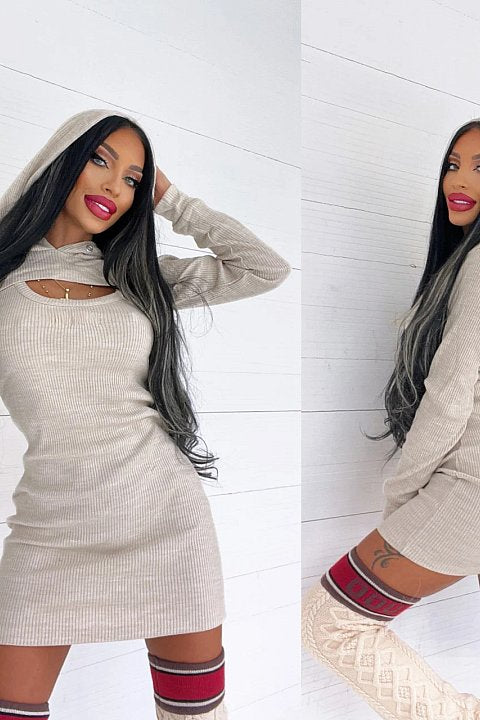 Abito corto sportivo a costine con bolero cropped a maniche lunghe con cappuccio.
