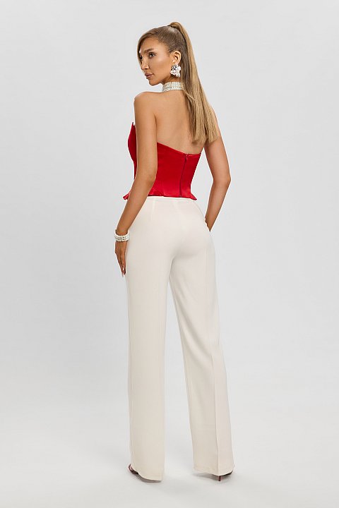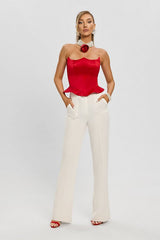 Dona un tocco di eleganza e femminilità al tuo outfit con questo corsetto rosso in satin. Il design senza spalline esalta le spalle e il décolleté, mentre la silhouette strutturata con dettaglio peplum valorizza il punto vita con un tocco raffinato. Perfetto per abbinamenti chic con pantaloni sartoriali o gonne eleganti, questo top è ideale per occasioni speciali e serate glamour. Indossalo con accessori minimal per un look sofisticato o osa con dettagli scintillanti per brillare in ogni evento. Il Dettaglio che Fa la Differenza per il tuo stile!