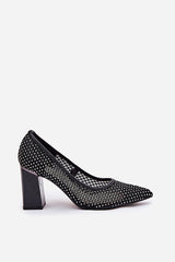 Aggiungi un tocco di eleganza e brillantezza ai tuoi outfit con queste décolleté nere in mesh trasparente, impreziosite da micro strass scintillanti. Il design a punta slancia la figura, mentre il tacco largo garantisce comfort e stabilità per un utilizzo prolungato. Perfette per eventi, cerimonie o serate speciali, queste scarpe si abbinano facilmente a vestiti eleganti o pantaloni dal taglio sartoriale.