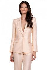 Giacca elegante monopetto con scollo a V e spalline imbottite.