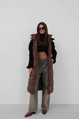Il Gilet Lungo Imbottito Marrone con Cappuccio è il capo must-have per la stagione fredda. Con il suo design moderno e oversize, questo gilet ti offre comfort e calore senza rinunciare allo stile. Il colore marrone neutro lo rende facile da abbinare con qualsiasi outfit, perfetto sopra un maglione a collo alto o una felpa casual.