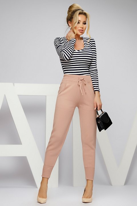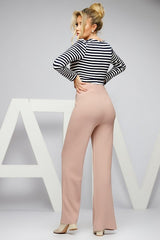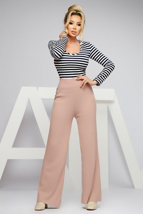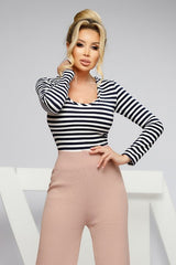 Maglia a maniche lunghe. Aderente ed elasticizzata in jersey di cotone fantasia righe, bianco e nero, con ampio scollo rotondo.