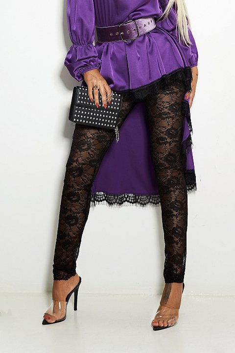 Pantaleggins elegante in pizzo nero. In pizzo elaborato con elastico in vita e fondo smerlato.