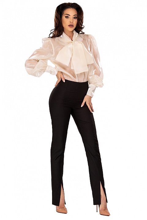 Pantaloni skinny a vita alta con spacchi alle caviglie.