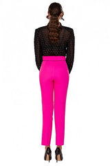 Pantaloni conici a vita alta con zip laterale, ideali per l'ufficio.