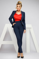Pantaloni a vita alta blu scuro, eleganti e aderenti, perfetti per un look professionale e moderno.