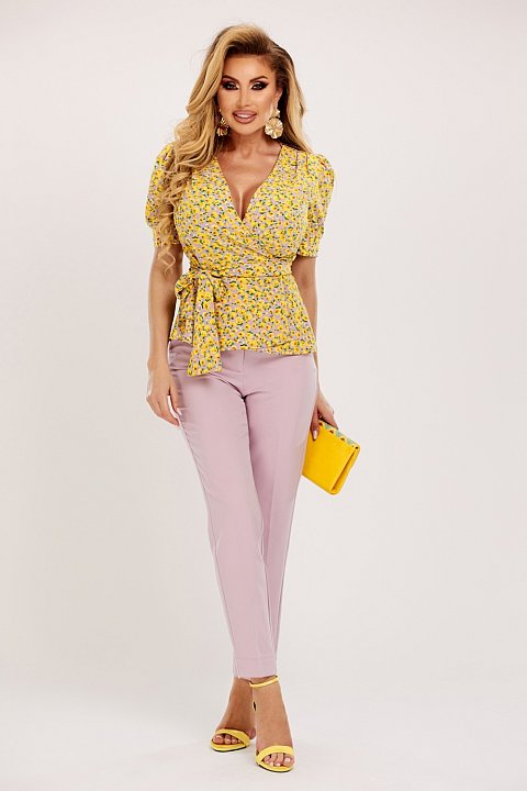 Pantaloni conici a vita alta color lilla con tasche nascoste, ideali per l'ufficio.