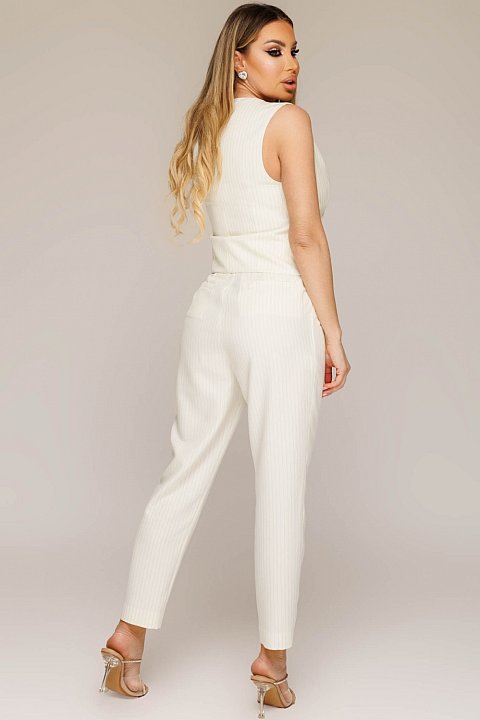 Dona un tocco chic e primaverile al tuo guardaroba con questi pantaloni crema a vita alta. Il taglio affusolato con piega centrale e chiusura a bottone valorizza la silhouette con eleganza, mentre la tonalità tenue e raffinata si adatta perfettamente a look formali o casual chic. Ideali con camicie bianche e blazer, per uno stile professionale ma moderno. Un capo must-have per la donna che ama distinguersi con classe.