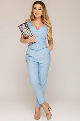 Dona un tocco chic e primaverile al tuo guardaroba con questi pantaloni azzurro a vita alta. Il taglio affusolato con piega centrale e chiusura a bottone valorizza la silhouette con eleganza, mentre la tonalità tenue e raffinata si adatta perfettamente a look formali o casual chic. Ideali con camicie bianche e blazer, per uno stile professionale ma moderno. Un capo must-have per la donna che ama distinguersi con classe.