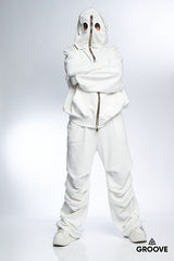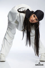 Pantalone jogger bianco con taglio ampio e morbido, caratterizzato da vita elasticizzata per una vestibilità comoda. Il tessuto leggero e il design oversize lo rendono perfetto per un look streetwear casual e rilassato,