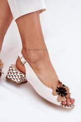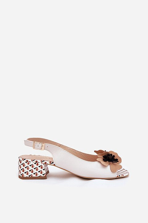 Perfetti per la bella stagione, questi sandali bianchi in vera pelle combinano stile e comodità con un design raffinato e femminile. Il maxi fiore applicato sul davanti aggiunge un tocco romantico, mentre il tacco largo con motivo geometrico dona carattere e stabilità. L'apertura frontale valorizza il piede con delicatezza. Ideali per eventi all'aperto, cerimonie o look da giorno chic. Da indossare con abiti midi, tailleur estivi o pantaloni palazzo.