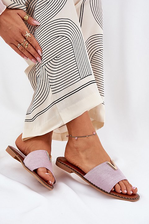 Perfetti per le giornate estive, questi sandali flat in tonalità lilla regalano comfort e stile. La fascia in tessuto morbido avvolge delicatamente il piede, impreziosita da un dettaglio dorato frontale che aggiunge un tocco glamour. Il design a punta aperta e il fondo piatto li rendono ideali per l’uso quotidiano, sia in città che in vacanza. Abbinali a pantaloni palazzo o vestiti leggeri per un look fresco e raffinato.