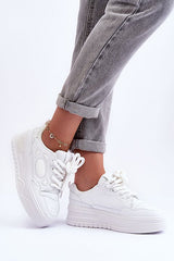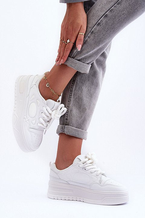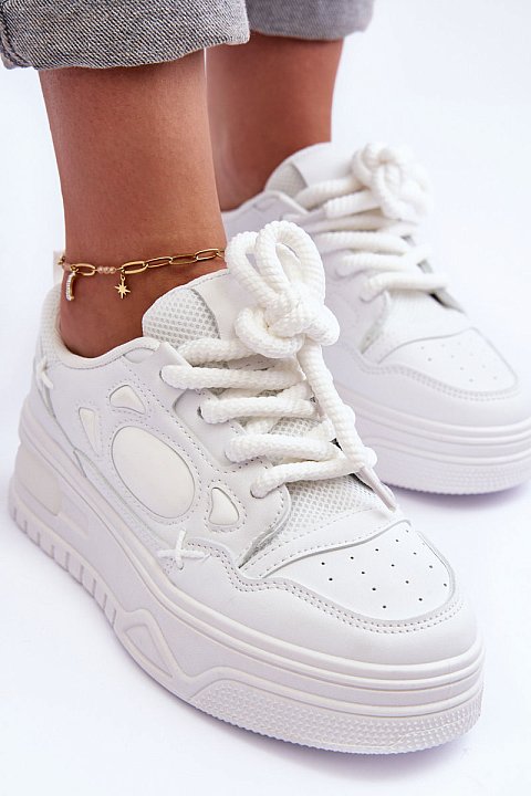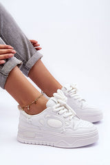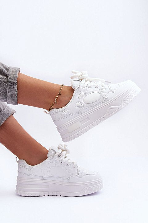 Scarpe sportive stringate in ecopelle con plateau alto 4 cm.