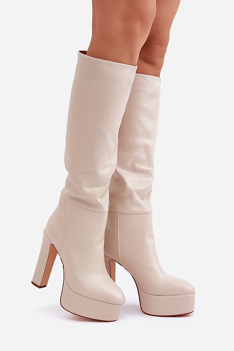 Aggiungi un tocco di eleganza ai tuoi outfit con gli stivali beige chiari al ginocchio in ecopelle di alta qualità. Caratterizzati da un tacco alto e una comoda platform, questi stivali uniscono stile e praticità. Ideali per le occasioni speciali o per completare i tuoi look quotidiani con classe.