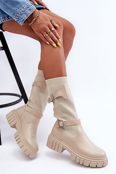 Stivali a calzino sotto al ginocchio con fibbie, suola dentellata e tacco alto 5 cm.