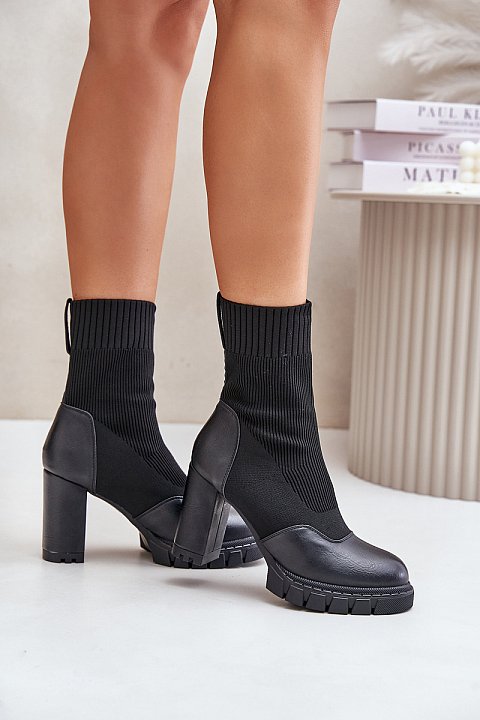 Eleganti stivaletti neri da donna con tacco robusto e comodo inserto elasticizzato a calzino. Perfetti per un look alla moda, questi stivali combinano comfort e stile, ideali per qualsiasi occasione. Completa il tuo outfit con un tocco di classe e versatilità.