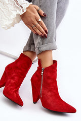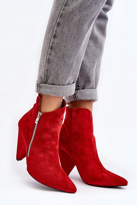 Stivaletti a punta in ecopelle scamosciata con tacco a cono alto 10.5 cm.