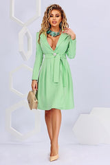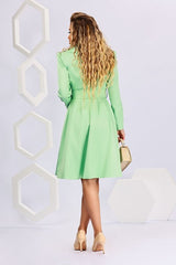 Trench dal taglio moderno con colletto a revers, scollo profondo e fascia annodabile con spilla gioiello.