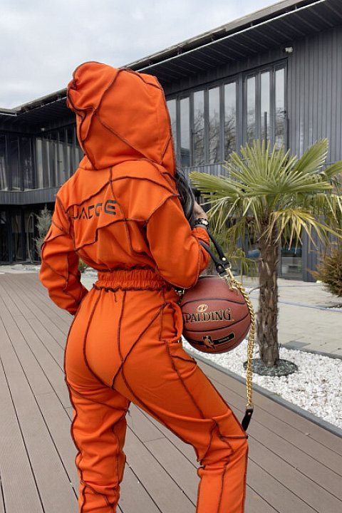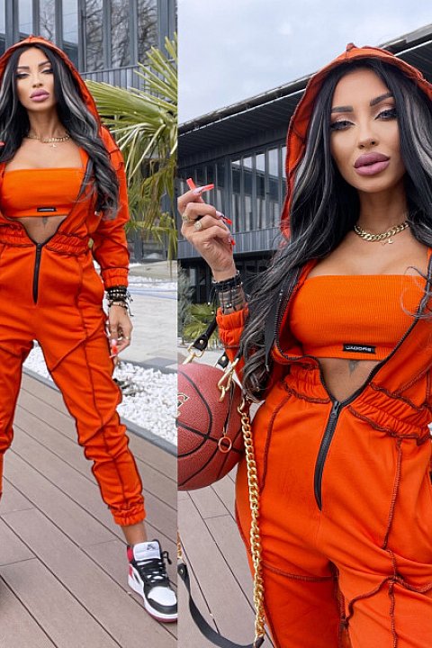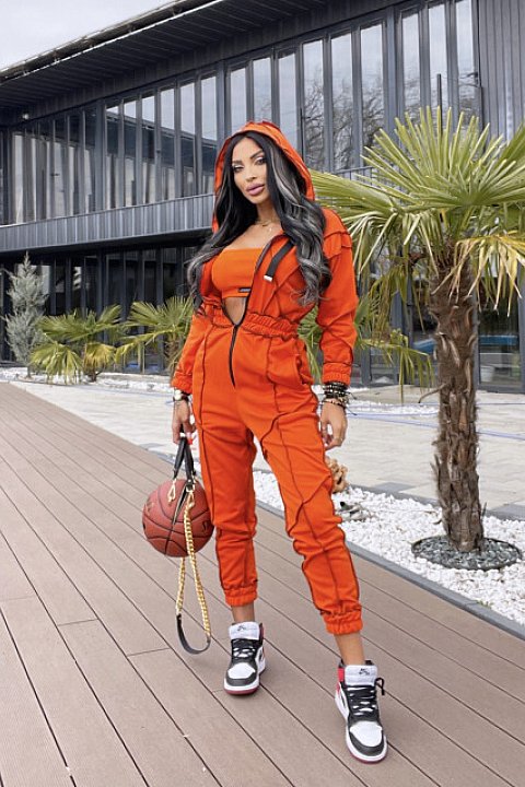 Set di 2 pezzi con tuta e bustino. Modello con maniche lunghe e pantalone alla caviglia. Arancione