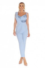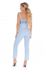 Jumpsuit elegante con motivi floreali sul corpetto, metà busto in stile giacca smanicata.