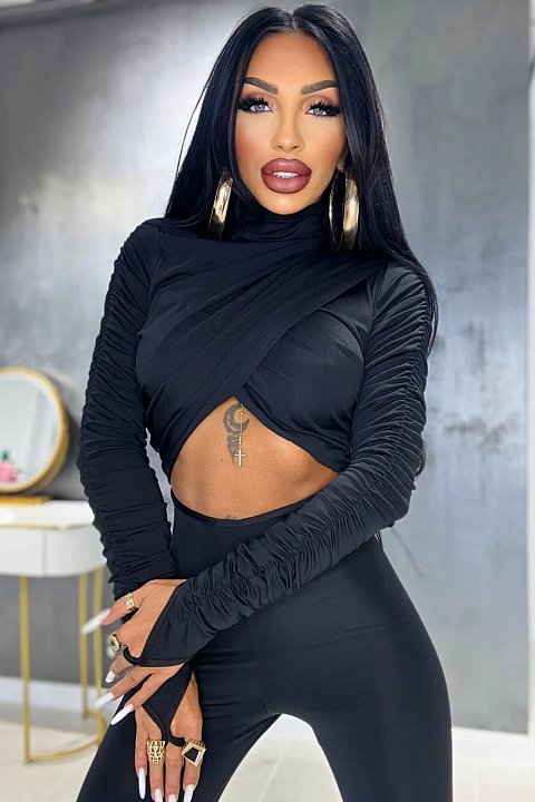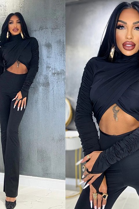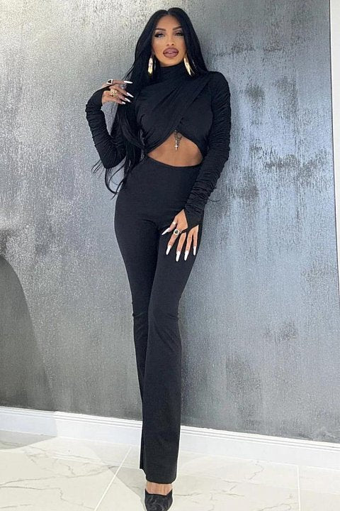 Jumpsuit dolcevita sportiva a maniche lunghe con coulisse, cut out sul davanti e pantaloni a palazzo.