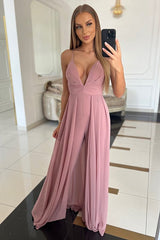 Lasciati conquistare dall'eleganza di questa tuta rosa dal design sofisticato. Il corpetto con scollo profondo valorizza la silhouette, mentre i pantaloni ampi e fluttuanti aggiungono un tocco di leggerezza e movimento. Un capo ideale per cerimonie, eventi o serate chic. Completa il look con sandali gioiello e una clutch raffinata.